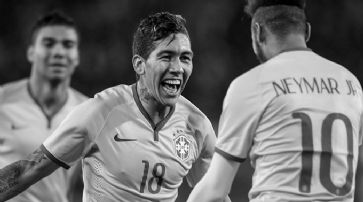 Roberto Firmino jubelt nach seinem Tor zum 1:2 mit Neymar. / Foto: EQ Images
