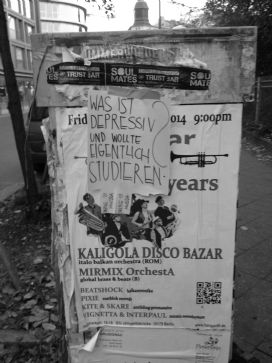 ![]() Double Penetration. Open Source. Whatsoever - hauptsache, es schenkt doppelt und dreifach ein. Dabei nennt's der Berliner auch bei seinen Drittwelt-Preisen eigentlich lieber beim Namen: Der Milchladen. Bilderrahmung. Brillenwerkstatt. Damit lässt sich 100prozentig kein Parallelbusiness vermarkten. Zumindest kein lukratives. Da ist es logisch, dass trotz Unternehmertum viele in Berlin irgendwie Hartz4-Empfänger bleiben und sich mit der Selbständigkeit «etwas nebenbei» verdienen. Die Hartz4-Empfänger, die zwar nicht arbeiten, aber doch was für die Gesellschaft tun wollen, überkleben eben Diskoplakate mit Freestyle-Anzeigen. *Sascha Plecic ist Inhaber einer Marketingagentur und beruflich viel in Berlin. Zum 25-jährigen Mauerfall nahm er sich die geliebte Hauptstadt zur Brust.