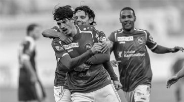 12'879 Zuschauer. - SR Jaccottet. - Tore: 16. Sutter (Burgmeier) 0:1. 51. Neumayr (Burgmeier) 0:2. 68. Neumayr (Penalty/Foul von Everton an Sutter) 0:3. 72. Tafer 1:3. 84. Rodriguez (Penalty/Foul von Stahel an Besle) 2:3. 93. Russo (Cavusevic) 3:3. St. Grosser Jubel nach dem Last-Minute-Ausgleich von Daniel Russo. / Foto: EQ Images