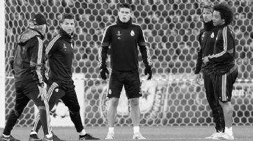 Real ist nicht zu stoppen Denn schon ein Punktgewinn heute käme für den FC Basel einem Exploit gleich. Real Madrid ist seit Mitte September nicht zu stoppen und reiht Sieg an Sieg, 14 am Stück sind es mittlerweile, darunter auch einer gegen den FC Barcelona. 56:8 lautet das Torverhältnis in dieser Zeitspanne. Die Schwierigkeiten zu Beginn der Saison sind für das Starensemble um den überragenden Cristiano Ronaldo längst nur noch eine ferne, unschöne Erinnerung. Als der FC Basel vor gut zwei Monaten zum Hinspiel in die spanischen Hauptstadt reiste, war Real Madrid in der zweiten Tabellenhälfte der Primera Division klassiert und die Zeitungen sprachen von einer Krise. Mit dem 5:1 gegen den FC Basel begann der selbst für Madrider Verhältnisse beeindruckende Höhenflug, zuletzt gab es ein 4:0 gegen Aufsteiger Eibar. Cristiano Ronaldo schoss dabei im 12. Meisterschaftsspiel seine Saisontore 19 und 20. Hoffen auf Schwächen Die Basler wissen nach dem Gastspiel in Madrid nur zu gut, dass sie im heutigen Duell auch darauf angewiesen sind, dass der Gegner nicht sein bestes Niveau erreicht, dass die offensiv so starke Millionentruppe mit Ronaldo, Karim Benzema, Gareth Bale, James Rodriguez oder Toni Kroos nicht zu zaubern beginnt. Training von Real im St. Jakob-Park. Von links: Trainer Carlo Ancelotti, Cristiano Ronaldo, James Rodriguez, Fabio Coentrao und Marcelo. /