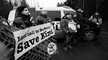 Saga Furs beliefert Burberry «Vier Pfoten» Wildtierexperte Thomas Pietsch: «Unser Protest richtet sich in erster Linie an das britische Modelabel Burberry. Denn als wichtiger Player in der Modeindustrie hat das Unternehmen grossen Einfluss und auch alle nötigen Kontakte in Finnland, um Kimi zu befreien und ihm das Leben zu retten.» Fast alle Fuchsfelle aus Finnland werden von dem Auktionshaus Saga Furs zertifiziert, welches auch Burberry beliefert. Genau wie zwei Millionen andere Füchse in Finnland vegetierte Kimi sein ganzes Leben in einem kleinen Maschendrahtkäfig vor sich hin, um in Kürze getötet zu werden - nur wegen seines Fells. «Burberry muss endlich die Verantwortung für seine Modelinie übernehmen. Es wird Zeit, sich wirklich mit dem Echtpelz zu befassen, denn der hat auch ein Gesicht und einen Namen - nicht nur flauschiges Fell, für das es ausreichend Alternativen ohne Tierleid gibt.Die Polizei blockierte die #savekimi Aktivisten. / Foto: VIER PFOTEN