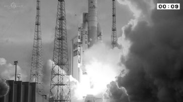 Die Ariane-5-Rakete hob am Samstagabend problemlos von dem europäischen Weltraumbahnhof Kourou in Französisch-Guyana ab. /