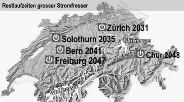 Zürich wird bereits 2031 vom Netz genommenDer Nationalrat hat heute seinen Kurs in der Energiewende kompromisslos fortgesetzt und beschlossen, die grössten Stromfresser des Landes schrittweise vom Netz zu nehmen. Zürich wird 2031 endgültig abgeschaltet, Bern soll seine Laufzeit ab 2041 um zehn Jahre verlängern können.Marco Ratschiller / Quelle: Nebelspalter / Mittwoch, 10. Dezember 2014 / 00:47 h