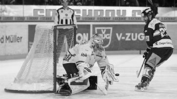 Flyers geben Führung preis Auf den ansprechenden Start der Zuger - Suri markierte in der 12. das 1:0 - reagierten Flyers souveräner als auf die Gegentore gegen den SCB (1:5) am Vortag. Kellenberger erzwang den Ausgleich, ehe Bodenmann den EVZ-Keeper Stephan mit einem haltbaren Schuss überraschte. Weil die Flyers aber unter ähnlichen Schwankungen zu leiden haben wie Zug, entglitt ihnen die Führung bei Spielhälfte wieder. In doppelter Unterzahl mussten sie Robbie Earl das elfte Saisontor zugestehen. Und nach dem temporären 3:2 Leones (46.) wiederholte sich die Zürcher Leidensgeschichte - der langjährige NHL-Professional Pierre-Marc Bouchard ermöglichte dem EVZ die zweite Rückkehr.Zug - Kloten Flyers 3:4 (1:1, 1:1, 1:1, 0:0) n. P. 6596 Zuschauer. - SR Fischer/Kurmann, Espinoza/Tscherrig. Josh Holden scheitert an Klotens Torhüter Jonas Müller. / Foto: EQ Images