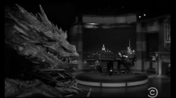 Smaug beantwort brennende Fragen von Stephen Colbert. /