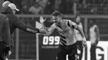 Zug um Zug Zweimal ging Dortmund in Führung, zweimal glichen die Gäste aus. Das 2:2 erzielte Naldo in der 85. Minute nach Vorlage von Ricardo Rodriguez. Hertha Berlin führte 3:0 und bis in die neunzigste Minute 4:2. Alexander Meier schoss danach beide Treffer zum Punktgewinn der Frankfurter. Auch Haris Seferovic reihte sich bei den Gastgebern unter die Torschützen ein. Mönchengladbach führte schon zur Pause mit 2:0. Nach dem Anschlusstreffer der Bremer geriet Mönchengladbach eine Weile lang unter Druck. Spätestens nach dem 3:1 von Christoph Kramer und der Roten Karte gegen den Bremer Luca Caldirola waren die Gladbacher ungefährdet. Resultate: Borussia Dortmund - Wolfsburg 2:2 (1:1). - Tore: 8. Aubameyang 1:0. 29. De Bruyne 1:1. 76. Immobile 2:1. 85. Naldo 2:2. - Bemerkungen: Wolfsburg mit Benaglio und Rodriguez, ohne Klose (Ersatz). Borussia Mönchengladbach - Werder Bremen 4:1 (2:0). - Tore: 31. Kruse (Foulpenalty) 1:0. 38. Wendt 2:0. 51. Junuzovic 2:1. 64. Kramer 3:1. 88. Hrgota 4:1. - Bemerkungen: Mönchengladbach mit Sommer und Xhaka. 66. Gelb-Rot gegen Caldirola (Bremen/Foul). Hoffenheim - Leverkusen 0:1 (0:0). - Tor: 79. Kiessling 0:1. - Bemerkungen: Hoffenheim mit Schwegler und ab 57. mit Zuber. Leverkusen ohne Drmic (Ersatz). Eintracht Frankfurt - Hertha Berlin 4:4 (1:3). - Tore: 21. Brooks 0:1. 33. Ben-Hatira 0:2. 37. Schieber 0:3. 43. Aigner 1:3. 58. Seferovic 2:3. 80. Niemeyer 2:4. Jubel bei Klopp und Immobile nach dem 2:1 von Dortmund. / Foto: EQ Images