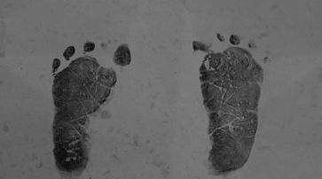 Fussabdrücke des kleinen Genesis Ali Dean. /