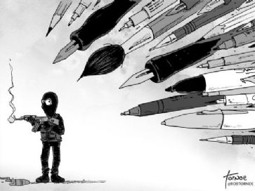![]() Dazu gehört auch das Recht zu Polemik und Satire», schreibt der «Landbote». Gesellschaft und Staat müssten sich «kompromisslos» gegen die Bedrohung der Meinungsfreiheit wehren, ohne sich «zu einem Kulturkampf gegen den Islam hinreissen» zu lassen. Fanatismus und Terror die Stirn bieten Der Kommentator des «St. Galler Tagblatt» sieht einen «Angriff auf unsere Werte». Die weltweiten Reaktionen stimmen ihn aber zuversichtlich: «Unsere Werte haben in den Köpfen der Gesellschaft Bestand; wir sind gewillt, dumpfem Fanatismus und blutrünstigem Terror die Stirn zu bieten.» Einen Angriff auf die Meinungsfreiheit konstatiert auch der Chefredaktor der «Südostschweiz», David Sieber. «Es ist eine blutige Kriegserklärung an die freie Presse und damit an das westliche Selbstverständnis», schreibt er zur Tat. Differenzierend hält er aber auch fest: «Freiheit geht immer mit Verantwortung einher.» «Charlie Hebdo» habe insofern Öl ins Feuer gegossen. Reaktion mit Karikaturen Viele Medien publizierten auch Zeichnungen, die als Reaktion auf den Anschlag kursierten. In der Westschweiz zeigten die meisten Medien eigene Karikaturen: Chappatte zeichnete auf dem Titelblatt von «Le Temps» einen Grabstein in Kreuzform mit den Worten «Morts de rire», wörtlich übersetzt: «Totgelacht». In der Karikatur der «Tribune de Genève» fliegt in Anspielung auf die Terroranschläge in New York ein Flugzeug in einen überdimensionierten Bleistift. «24 heures» zeigt eine kugeldurchsiebte Ausgabe von «Charlie Hebdo» - das auslaufende Blut formt das Profil eines Mannes mit Turban und Bart, das an die Bildnisse Mohammeds erinnert. Allgemein religionskritische Zeichnungen Unterschiedlich gingen die Schweizer Zeitungen mit der Frage um, welche der umstrittenen «Charlie Hebdo»-Karikaturen gezeigt werden sollen. Einige entschieden sich bewusst dagegen, Mohammed-Karikaturen abzudrucken. Anders tat es unter anderen der «Blick» - als Teil einer Auswahl von Zeichnungen, die zeigen, dass das Magazin nicht nur den Islam, sondern auch andere Religionen auf die Schippe nimmt. In Deutschland haben derweil mehrere Zeitungen die Mohammed-Karikaturen prominent nachgedruckt. Unter der Schlagzeile «Vive la liberté» («Es lebe die Freiheit») bestreitet die Berliner Zeitung «B.Z.» die gesamte Titelseite ihrer Donnerstagausgabe mit Titelbildern des französischen Magazins. - das auslaufende Blut formt das Profil eines Mannes mit Turban und Bart, das an die Bildnisse Mohammeds erinnert.