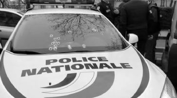 ![]() Ein von Kugeln durchlöcherter Streifenwagen der Pariser Polizei am Tag des Terroranschlags. /