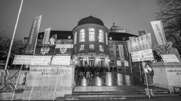 Das Aktionskomitee «Uni von unten» wirft Poroschenko Kriegshetzerei vor. Poroschenko befindet sich auf dem Weg zum Wirtschaftsforum WEF in Davos und hielt am Abend auf Einladung des Europainstituts an der Universität Zürich einen einstündigen öffentlichen Vortrag in englischer Sprache. Die Eröffnungsrede übernahm Bundesrat Didier Burkhalter, Vorsteher des Eidgenössischen Departements für auswärtige Angelegenheiten. Die Polizei war mit einem Grossaufgebot vor Ort. Die Stimmung blieb jedoch friedlich. Die Rede des ukrainischen Präsidenten Poroschenko sties auf Widerstand. /