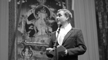![]() Der Basler Regierungspräsident Guy Morin hält die Ansprache zum Vortrag über Säkulare Ethik des Dalai Lama /