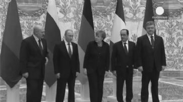 Beginn der Friedensgespräche in MinskKiew - Die Ukraine-Friedensgespräche in der weissrussischen Hauptstadt Minsk haben begonnen. Die deutsche Bundeskanzlerin Angela Merkel, der französische Präsident François Hollande, Kreml-Chef Wladimir Putin und der ukrainische Staatschef Petro Poroschenko zogen sich zu Verhandlungen im Palast der Unabhängigkeit zurück.bg / Quelle: sda / Mittwoch, 11. Februar 2015 / 17:23 h
