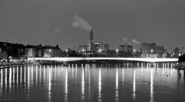 «Morgenstraich - vorwärts marsch!» Am frühen Morgen - Schlag vier Uhr - waren in der Innenstadt die Strassenlichter für den Morgenstraich ausgegangen.Blick auf die Basler Innenstadt und den Rhein beim Morgenstraich. /