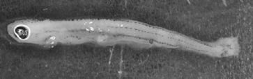 ![]() Eine Fischlarve mit Plastikteilchen im Verdauungstrakt. /
