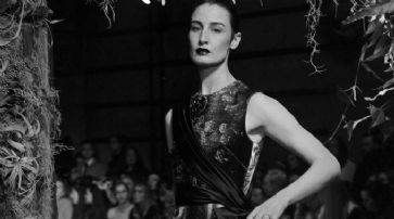 Einige Designs wiesen grosse elisabethanische Rüschen-Krägen auf, mit teilweise passenden Varianten an den Handgelenken. Die Looks komplettierte das Make-up der Models, das vorrangig aus einem kräftigen schwarzen Lippenstift bestand. Noch mehr Schwarz Im Laufe der Show zeigten die Models noch mehr schwarze Designs, locker sitzende Mäntel, Umhänge und Kleider - allesamt mit einer Rüschenverzierung am Hals. Für diejenigen, die sich nicht mit dem Horrorthema der Modenschau anfreunden konnten, hatte Deacon noch einige Print-Looks im Angebot. Dazu zählten figurbetonte Kleider, die bis unter die Knie reichten und in Monochrom gehalten waren. Am eindrucksvollsten waren jedoch die Abendkleider der Kollektion. Erin O'Connor (37) flanierte in einem bewundernswerten roten-Teppich-Look mit einem riesigen Reifrock den Laufsteg entlang. Der Print setzte sich aus einer schwarz-lila-weissen Farbmischung zusammen und verlieh ihr das Aussehen einer Gothic-Prinzessin. Alles in allem eine gelungene und aussergewöhnliche Giles-Deacon Show für alle Fans düsterer und glamouröser Outfits.