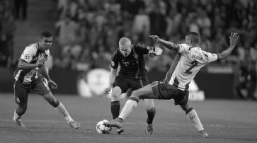 Was der FC Porto bot, war eine Machtdemonstration sondergleichen. Kombinationsfussball von einem anderen Stern. Tiki-Taka aus dem Taka-Tuka-Land. Das hatte selbst Pep Guardiola noch nicht gesehen. Auf der anderen Seite die selbsternannte «beste Mannschaft der Welt», der gnadenlos ihre Grenzen aufgezeigt wurden. Sobald der Gegner jeweils ein starkes Pressing spielt, ballsicher ist, unlimitierte Angriffsvarianten drauf hat und ordentlich verteidigt, offenbaren die Münchner ihre eben nicht vorhandene «individuelle Weltklasse». FC Bayern München, das zeigte dieses Spiel deutlich, ist eine zusammengekaufte Söldnertruppe - und keine Mannschaft. Da ist kein Spirit, nicht selten aber bajuwarische Selbstgefälligkeit und Arroganz. Dieser Bierdeckelhorizont, gepaart mit unrealistischen Ansprüchen, ist auf internationalem Parkett nicht selten peinlich. Kühlelement Quaresma Wie in der Startminute, als Bayern's Schönwetterfussballopa Gstabi Alonso seine Coolness spazieren fuhr und prompt vom aggressiven Porto-Kapitän Jackson Martinez umgerannt wurde. Der zog alleine auf Ruhrpott-Hanks Manuel Neuer, der den wieselflinken Kolumbianer nur noch per Notbremse stoppen konnte. Dass Hanks (oder ist es das Milchschnittekind?) dabei keine rote Karte sah (Regel: «Das Verhindern einer klaren Torchance wird im Strafraum mit Penalty und roter Karte bestraft»), versteht nur der Schiedsrichter. Den glasklaren Strafstoss versenkte Ricardo Quaresma dann so cool, als käme er direkt aus dem Eisbecken. Thiago (links) gegen Danilo (rechts). / Foto: EQ Images