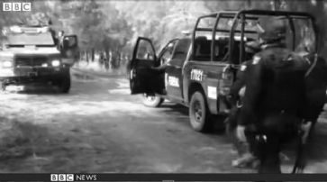 Waffen beschlagnahmt Bei dem Einsatz wurden drei Verdächtige festgenommen. Zudem beschlagnahmte die Polizei zahlreiche Schusswaffen und einen Granatwerfer. Eine Lagerhalle und sechs Autos gingen bei dem Gefecht in Flammen auf. Die Zahl der Toten könne noch weiter steigen, da die Untersuchung des Tatorts noch andauere, sagte Rubido.Die Polizei ging Hinweisen nach, welche besagten, dass eine kriminelle Organisation eine Farm besetzt. / Screenshot: leak@news