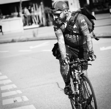 ![]() Als ich ihm erzählte, ich sei ein Velokurier in Zürich, fragte er mich, ob ich in New York für den «Samurai Messenger Service» fahren will. Ich konnte es nicht fassen und fing mega aufgeregt und nervös am nächsten Tag als Testpilot an. Der Chef war zufrieden, und ich bekam, «wenn auch nur», eine kurze Fixtour zugeteilt. Aber ich war stolz ohne Ende, ich hatte einen Motorola-Beeper zum Zurückrufen und Erreichbarsein. Da es keine Handys gab, musste man immer Kleingeld in der Tasche haben, um von der Telefonzelle zurückrufen zu können. Und an der Weltmeisterschaft kam ich dann mit der internationalen Velokurier-Community in Kontakt. Da wusste ich: das ist kein Job, das ist eine Lebenseinstellung. Eine Philosophie! Egal, wo auf der Welt Du arbeitest: die Firma, für die Du fährst, ist Deine Familie. Und sie bleibt es auch. Klingt cool. Was ist weniger prickelnd am Velokurier sein? Als Kurier bist Du asozial. Es gibt nur Dich und die Stimme aus dem Funkgerät. Du musst immer wachsam sein. Bei Wind, Regen, Fussgängern, Türen von parkierten Autos, Geschrei, dem Bus, der Dich zur Seite drückt. Du darfst Dich nicht ablenken lassen, auch wenn Du müde Beine hast. Aber irgendwann entwickelst Du einen Instinkt. Wo beschleunigst Du? In welchem Winkel ist der Rest des Verkehrs? Und trotzdem lassen sich Crashs nicht verhindern. Was tust Du, um das Risiko minimal zu halten? Ich esse nicht zuviel am Mittag - das macht Dich träge und unkonzentriert. Darum eher abends viele Kohlenhydrate. Dann musst Du aber eben schauen, dass Du nicht zuviel Gewicht zulegen. Hehe. Macht Sinn. Gibt es sonstige Tricks? Du kennst die Stadt, in der Du fährst, wie ein Landstreicher. Du weisst, wo welche Bank zum Ausruhen steht, wo es gratis Kaffee gibt - und Du kennst die Nummern der Türcodes von Fastfood-Restaurant-Toiletten auswendig. Die Parks, die Dir in den kurzen Pausen im Sommer Schatten spenden und die Lüftungsschlitze im Winter, die Dich warm halten. Dann muss die Berufung weit über's Romantische hinausgehen. Tauscht man sich da untereinander aus? Über diese erwähnte Messenger Community? Ja, die sogenannte «Mess-Family-Szene» ist stark vernetzt, sehr intim - jeder kennt jeden. Und man unternimmt immer wieder was. Ein paar Mal im Jahr steigt beispielsweise ein Alleycat, die Leistungsschau der Velokuriere. Oder eine Meisterschaft, genannt ECMC (European Cycling Messenger Championship) oder CMWC (Cycle Messenger World Championship, Anm. d. Red.) in internationalen Grossstädten. Ich hänge meistens eine Woche an, um die Stadt, in der ich bin, mit dem Velo zu erkunden. Durch die lokalen Kuriere findet man schnell Anschluss in die Undergroundszenen. Die Londoner Szene kennst Du besonders gut. Ja, nach dem berühmten Alleycat «London Calling» verliebe ich mich jedes Mal wieder neu in die Stadt. Und da finde ich immer wieder neue Freunde in der Kurierszene. Ich bin da richtiggehend integriert, und man bot mir beim Bier im Pub auch schon mal an, eine Schicht zu fahren. Der Job ist da viel härter als in Zürich, der Konkurrenzdruck ist grösser. Die Kurierunternehmen unterbieten sich gegenseitig, um zu überleben. Das macht's dort zum notorisch unfairen Geschäft. Die Kosten werden an die Kuriere weitergegeben. Wieviel verdient ein Kurier da? Früher kriegten sie £ 2,75 pro Lieferung, jetzt sind es gerade mal £ 2,25. Dazu kommt noch ein Extra-Abzug auf der Gehaltsabrechnung: £ 2 pro Woche - für Versicherung. Glücklicherweise gibt's einen LCEF (London Courier Emergency Fund, Anm. d. Red.), der Velokuriere finanziell unterstützt, die eine schwere Verletzung erlitten haben. Die meisten sind ja selbständig und nicht, wie bei uns, krankenversichert. Wenn ein Kurier sich in London verletzt, bekommt er von der erwähnten Versicherung nicht dasselbe wie in der Schweiz, sondern viel weniger. Die Berufsrisiken sind also hoch. Darum musst Du Deine Schicht unbedingt konzentriert und wachsam fahren. Wenn Du einen Unfall baust, bist Du also praktisch auf Dich selber angewiesen? Ja, und deshalb der Fund. Das LCEF finanziert sich über die Kurier-Community selbst, Spenden, Sponsoringbeiträge oder den LCEF-Merchandising-Umsatz. Käppli, Shirts, und dergleichen. Die sind gerade in den Staaten sehr gefragt. Machst Du das noch lange? Bist ja keine Zwanzig mehr. Mal sehen. Ich bin jetzt fünf Jahre beim Flashkurier, vorher u.a. bei Ultra, gegründet von Aussteigern des Veloblitz. Alles in allem habe ich fünfzehn Jahre Erfahrung als Velokurier, dabei entdecke ich immer noch viel Neues, mit all den Movers und Shakers, New Radicals, Propheten und Glitter Kids - das ist nach wie vor sehr interessant. Wir vom Flash Kurier sind eine grosse Familie, ich wohne mit fünf davon und einem Hund in einer WG in Wollishofen. Unsere WG ist ein bekannter internationaler Velokuriertreffpunkt. Wir kriegen echt viel Besuch. Hehe. Klingt wirklich nach Lebenseinstellung - und nicht nach Job. Wie deine anderen Jobs. Ja, ich tue das, was mir entspricht. Ich arbeite beispielsweise immer noch als Dekorateur, stückbezogen, im Vorstellungsbetrieb des Schauspielhauses Zürich. Und ich bin Balkan-Beats- bzw. Gypsy-Punk-DJ! Aufgelegt hab ich schon an den erwähnten Parties mit den Mutoid-Waste-Leuten. Und danach in der Zürcher Electroszene. Meine Passion gilt aber der Balkan/Gypsy-Musik. Da dieser Sound in den Clubs verpönt ist, konnte ich meiner Leidenschaft nur an Geburtstagsparties frönen. Da sich das aber rasch rumsprach und dann auch Zürich bereit dafür war, wurde ich plötzlich auch in Clubs gebucht. Jetzt lege ich als «Rock Gitano» (Veranstalter Goran Potkonjak gab mir den Namen, weil aufgrund meiner Geschichte nur der in Frage käme) fast überall auf, auch im Ausland. Ich durfte sogar mit den amerikanischen Gypsy-Punk-Ikonen Gogol Bordello (arbeiteten u.a. mit Madonna, Anm. d. Red.) als Tour-DJ mit. Ebenso mit den Zürchern Palko Muski. Ich freue mich alles in allem, dass es den Menschen immer noch nicht verleidet ist, 