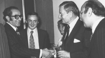 Inzwischen ist David Rockefeller der Patriarch der Familie mit dem klangvollen Namen, den prachtvollen Residenzen und den Milliarden auf den Konten. Seine fünf Geschwister sind seit Jahrzehnten tot und sogar eines seiner eigenen sechs Kinder hat er im vergangenen Jahr nach einem Flugzeugabsturz zu Grabe tragen müssen. Rüstiger Jubilar Aber David Rockefeller zeigt sich noch rüstig in der Öffentlichkeit und feiert am kommenden Freitag (12. Juni) im Kreis seiner Familie seinen 100. Geburtstag. An seinem Geburtsort lud das MoMA jüngst im Voraus zur grossen Party für Rockefeller ein. «David ist so besonders. Er ist ein wunderbarer Mensch», sagte der Künstler Jeff Koons der «Vogue». David Rockefeller (2. von rechts) mit dem Präsidenten des Arabischen Währungsfonds Hashim Kirdar (1980). /