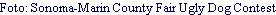 Quasi Modo, der bereits zum zweiten Mal am Wettbewerb zum hässlichsten Hund teilnahm, hat zahlreiche Geburtsschäden, die seinen Rücken zu kurz für seinen Körper aussehen lassen. Deswegen wirke er so gruselig, dass schon erwachsene Männer aus Angst auf ihre Autos gesprungen seien, sagten die Besitzer.