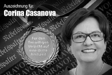 Verzicht auf dritte AmtszeitCorina Casanova, die Schweizer Bundeskanzlerin, kandidiert nicht für eine dritte Amtszeit! Ein bemerkenswerter Entscheid, denn der freiwillige Verzicht auf einen Amts-Sessel wird in der Politik (oder auch bei korrupten Weltsportverbänden) nur äusserst selten vollzogen...Diana von Ow / Quelle: Nebelspalter / Montag, 29. Juni 2015 / 17:37 h