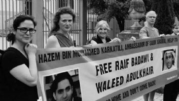 Warum demonstriert ihr nicht gegen Katar?Als eine Gruppe Humanisten vor der Saudischen Botschaft für die Freilassung des Blogger Raif Badawi protestierte, wurden sie von den Botschaftsschutz-Beamten gefragt, ob sie nicht besser gegen Katar demonstrieren sollten. Gerne wird hier die Antwort gegeben, auch wenn dies den Beamten gar nicht interessierte.Andreas Kyriacou / Quelle: news.ch / Donnerstag, 2. Juli 2015 / 15:10 h
