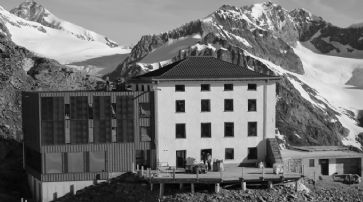 ![]() Die Burgergemeinde Zermatt baute 1911 gleich neben der Hörnlihütte das Berghaus Matterhorn Belvédère. Nach mehreren Umbauten boten die beiden Hütten ab 1982 rund 170 Schlafplätze. Weniger Schlafplätze Im Zuge der Erneuerung wurde die alte Hörnlihütte abgerissen und ihr Fundament für einen Helikopter-Landeplatz verwendet. Auf der anderen Seite des Belvédères wurde ein moderner Erweiterungsbau erstellt. Seither übernahm der gesamte Gebäudekomplex den Namen Hörnlihütte. Die Massenschläge wurden durch kleinere Zimmer ersetzt und sogar eine Dusche auf 3260 Meter über Meer ist nun möglich. Beim acht Millionen Franken teuren Bauprojekt wurde die Zahl der Schlafplätze bewusst von 170 auf 130 verkleinert. Damit soll der Ansturm von Bergsteigern am Matterhorn gedrosselt werden. Die Hütte verfügt über eine modernisierte Wasserfassung- und Aufbereitung und kann bei Vollbetrieb etwa die Hälfte des Energieverbrauchs durch Photovoltaik decken. Die restliche Energie liefert ein neuer Dieselgenerator, bei dem auch die Abwärme genutzt wird.