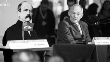 Schäuble ist kein Einzelfall in der deutschen Geschichte. So lohnt es, Politarchäologie zu betreiben. Denn die Ähnlichkeiten von damals mit heute befremden und sollten medial zum Thema werden. Deutschland galt seit Bismarck als «verspätete Nation», da dem Land in Europas Mitte die Zivilgesellschaft und vor allem auch zivile Medien bei der Reichseinigungvon oben fehlten. 1921 schrieb der liberale Jurist Hermann Kantorowicz (dessen Professur von den Nationalsozialisten 1933 mit sofortiger Wirkung beendet wurde):«Die Konsolidierung der Demokratie in Deutschland kann nur auf den Trümmern des Bismarckkultes gelingen.» Kurz nach der Machtübernahme durch die NSDAP, hielt Dr. Goebbels die Gedenkrede für Bismarck - eine Rede, die einige deutsche Politiker und Medien 2015 eins zu eins übernehmen würden, wüssten sie nicht, woher sie stammt. Auch die DDR huldigte Bismarcks Aussenpolitik als «Grundelemente unserer eigenen Aussenpolitik» (Zitat SED-Chef Walter Ulbricht im Jahr 1965). In der BRD taugte zunächst Bismarck als von den Nationalsozialisten verehrter Mythos nicht mehr so richtig zum Helden. Historisch unbestritten war, dass der eiserne Kanzler militaristische Traditionen und einen Führerkult begründet hatte, die direkt ins Dritte Reich mündeten. Noch 2011 titelte Deutschlandradio Kultur zur politischen Werdung Deutschlands: «Scharnier zwischen Bismarck und Hitler.» 2015 sieht alles anders aus. Zu seinem 200. Geburtstag wird Bismarckin den deutschen Medien als Stifter des Nationalstaates, als Vorbild, als grosser Aussenpolitiker gelobt. Sogar eine eigene Briefmarke erhält der Namensgeber des Herings. Alle Politiker über 70 ehren den Eisernen Kanzler unkritisch: Von Gauck über Schröder hin zu Schäuble. Wer den Finanzminister 2015 erlebt hat, wer seine Politik analysiert, wer die Medienberichte studiert, wer die Wirkung von Schäubles Tun in Europa erfasst, realisiert mit einem Schlag die Dimension einer deutschen Geschichte, die in 100 Jahren vielleicht mit einem Band:«Deutscher Autoritarismus: Von Bismarck bis Schäuble» zusammengefasst werden kann. Der Angstmach-Minister Schäuble, der Deutschnationale, der die «Bundeswehr als Notpolizei bei der Gefährdung der inneren Sicherheit einsetzen wollte», der Kampagnenführer gegen die doppelte Staatsbürgerschaft, der BILD-MINISTER einer «Werft Sie raus»-Politik in der Griechenlandfrage als Warnung gegen alle demokratischen Bürger Europas.Harmonisch vereint auf einem Bild: «Deutscher Autoritarismus: Von Bismarck bis Schäuble» /
