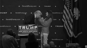 Bei einer Rede in Greenville im US-Bundesstaat South Carolina bat der Immobilienmilliardär und Präsidentschaftsbewerber plötzlich eine Frau auf die Bühne.