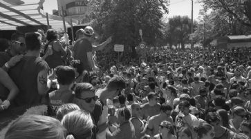 So wurde gegen 15.30 Uhr an der Einmündung des Zürichsees zum Schanzengraben eine 17-Jährige bewusstlos aus dem Wasser gezogen. Die junge Frau wurde umgehend ins Spital gebracht, sie befindet sich laut Cortesi in kritischem Zustand, ist aber ausser Lebensgefahr. Zudem seien bei der Polizei mehrere Meldungen eingegangen, wonach in der Menge Reizstoffsprays eingesetzt würden. Die Fahndung nach dem oder den Urhebern sei im Gang, sagte Cortesi. Zu viel Alkohol oder zu wenig Wasser Obschon die Veranstalter zur Vorsicht rieten, trugen auch in diesem Jahr zahlreiche Personen Flip-Flops. Einige waren gar barfuss unterwegs, wie Iris Schärer, Mediensprecherin von Schutz & Rettung, auf Anfrage sagte. So mussten die Sanitäter auch in diesem Jahr zahlreiche Schnittverletzungen an den Füssen behandeln. Grosser Andrang vor der Bellevue Stage. /