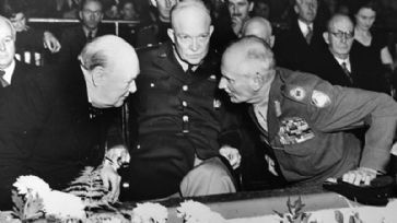 Churchill (links) und Eisenhower (mitte) 1951: Noch 2 Jahre bis zur Ursünde der Nahostpolitik. /
