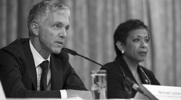 Keine Angaben machte er auch zu den 121 Meldungen, die bei der Meldestelle für Geldwäscherei in Bern registriert worden waren. Auch den Ausführungen der US-amerikanischen Justizministerin und Generalbundesanwältin Loretta Lynch waren keine fundamental neuen Erkenntnisse rund um den FIFA-Korruptionsskandal zu entnehmen. Mittlerweile gebe es 14 Verdächtige, wovon 13 verhaftet worden seien, sagte sie. 10 seien in der Schweiz und anderen Ländern, drei in den USA. Zusätzliche Anklagen angekündigt Lynch rechnet jedoch mit weiteren Anklagen. Man sei wohl bald in der Lage, zusätzliche Anklagen zu erheben, sagte sie. Bundesanwalt Michael Lauber und die US-Generalbundesanwältin Loretta Lynch. /