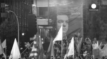 Anhänger von Tsipras auf dem Parlamentsvorplatz in Athen. /