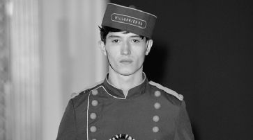 Für ihre erste Modenschau am Sonntag [20. September] liess sie sich etwas ganz Besonderes einfallen: Jungs in Pagenuniformen präsentierten ihre Entwürfe, unter denen sich Modelle im Leopardendruck und in schrillem Pink fanden.«Ich mag keine komplizierten Taschen. Ich will ein bisschen Spass haben», beschrieb Emma Hill ihre Entwürfe. Model für Hill&Friends. /