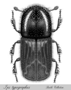 ![]() Der Buchdrucker (Ips typographus) hat eine Länge von nur etwa 4-6 mm. /