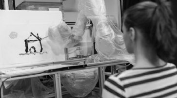 Roboterarm malt Bild per AugensteuerungLondon - Wissenschaftler des Imperial College London haben ein neuartiges Steuersystem für einen Roboterarm entwickelt, das sich rein über die Augen des Users bedienen lässt.jbo / Quelle: pte / Donnerstag, 1. Oktober 2015 / 09:33 h