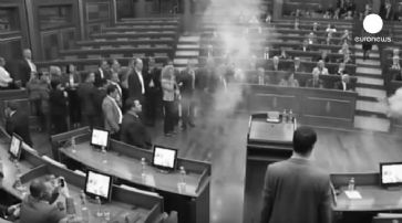 Die Sitzung musste wegen versprühtem Tränengas abgebrochen werden. / Screenshot: euronews (in english)