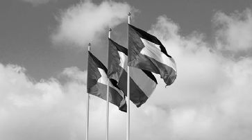 Die Flagge der palästinensischen Autonomiegebiete Westjordanland und Gazastreifen ist zugleich auch die Flagge des Staates Palästina. Sie ist in den panarabischen Farben weiss, schwarz, grün und rot gehalten. Ein rotes Dreieck reicht ein Viertel in die Flagge hinein.