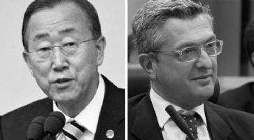 Ban Ki Moon (links) erklärt Filippo Grandi zum neuen UNO-Flüchtlingskomissar. /