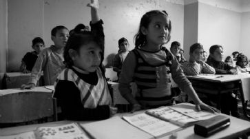 Syrische Flüchtlingskinder im Klassenzimmer einer libanesischen Schule. /