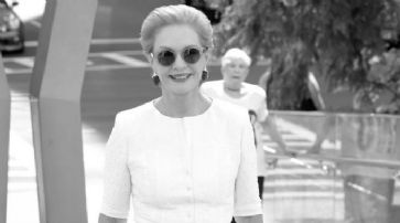 ![]() Unter dem langen, geöffneten Rock, der im Wind weht blitzt ein kurzes Unterröckchen in der gleichen Farbe hervor. Ein schmaler Gürtel akzentuiert die schlanke Taille des Models. Ihre Kollegin trägt ein zweiteiliges, verziertes Ensemble in Hellgrau. Der lange Faltenrock lässt dank eines hohen Schlitzes einen Blick auf die Beine der Blondine frei. Ein weiteres Foto zeigt das Trio ganz in Weiss auf einer Sonnenbank. Und auch hier ist wieder das Hündchen mit im Spiel, das frech an dem Träger von Lilys Handtasche zerrt. Im Februar werden die restlichen Kampagnenfotos veröffentlicht.