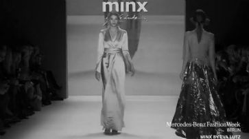 ![]() Ein Highlight der Show ist der goldige Plisséerock, aus einem steifen Material. der rote Samtpullover rundet das Bild perfekt ab. Der Rock wird ähnlich nochmals gezeigt und mit Nude Spitze kombiniert. Auffallend sind die vielen Abendkleider, die das Label designt hat. Minx beginnt mit einem pompösen, grossen, bodenlangen Rock in einem Streifenmaterialmix und silbernem Oberteil. Weiter zeigt die Designerin eine wunderschöne Hosenkombination in schwarz und dazu einen ärmellosen, silbernen Mantel in 3D Optik. Fortgesetzt wird die silbrige Linie mit einem hautengen, langen Kleid, bei dem Silber als Farbklecks inszeniert wird. Anschliessend folgen gewickelte Roséseidenkleider mit atemberaubendem Fall, ebenso Chiffon oder Spitzenroben, sehr körperbetont und weiblich in orange, bordeaux oder auch schwarz-weiss. Die Show schliesst das Label mit stilvollen, zurückhaltenden Alltags- oder Busniesslooks ab. Eine gelungene Präsentation der kommenden Trends.
