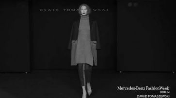 Die Kleider für die kommende Saison tragen die Trendfarben Orange, Braun und Beige oder einfach schwarz. Wilde, geometrische Muster, Streifen, lange Ärmel, Cut Outs oder auch angenähte Schleppen zieren die Überknielangen Kleider. Beim Schuhwerk setzt Tomaszewski auf auf Overknees in Lack oder Lederoptik. Fell ist auch hier ein Thema. Im Hause Tomaszewski sind Streifen ein grosses Thema. /