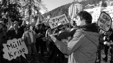 ![]() Die Polizei hatte bereits im Vorfeld der Kundgebung mehrere Personenkontrollen durchgeführt - unter anderem am Bahnhof. Wegen der Kundgebung seien der öffentliche und private Verkehr rund um den Bundesplatz zeitweise beeinträchtigt gewesen, da die umliegenden Strassen für den Polizeieinsatz hätten gesperrt werden müssen. Die Zuger Polizei wurde auch von Einsatzkräften aus allen zentralschweizerischen Polizeikorps, von Kantons- und Stadtpolizei Zürich sowie der Kantonspolizei Tessin, der Bahnpolizei und von Zuger Partnerorganisationen wie Staatsanwaltschaft, Rettungsdienst, Feuerwehr und Zivilschutzorganisation unterstützt. Kritik am kapitalistischen System «Wipe out WEF - Zug um Zug zur sozialen Revolution» lautete einer der Slogans an der Kundgebung. Das Anti-WEF-Bündnis kritisiere nicht das WEF als Veranstaltung, sondern das kapitalistische System, welches am WEF die globale Ausbeutung vernetze und plane, hiess es in einem im Internet veröffentlichten Aufruf zur Demo. Zug mit all seinen Konzernen, Briefkastenfirmen und Steuerflüchtlingen sei ein passender Ort für ihre Kundgebung. Auf einem in Zug mitgeführten Transparent schrieben die WEF-Kritiker: «In eurer Stadt sitzen Konzerne die töten, vertreiben & zerstören. Aber ihr sorgt euch um die 'Gewalt' einer Demo?!»20 Demonstranten in Davos Ähnlich tönte es an einer friedlichen Demonstration am Samstag in Davos, die unter dem Motto «Diese Wirtschaft tötet» stand. «Wer Waffen sät, wird Flüchtlinge ernten», hiess es dort auf einem Transparent. Rund 20 Personen nahmen an der Protestaktion teil. Die kleine Schar pazifistischer Aktivisten rief nicht einmal mehr die Polizei auf den Plan, die den WEF-Tagungsort in früheren Jahren mit vielen Hundertschaften gegen Unzufriedene und Globalisierungsgegner absichern musste. Der Organisator der Davoser Demo, Henning Zierock, störte sich nicht am kleinen Aufmarsch. «Wir sind nur wenige, aber wir sprechen für viele», sagte er an der Kundgebung. Am WEF sei es genau umgekehrt: Da träfen wenige Entscheidungen, die Folgen hätten für das Leben von vielen.