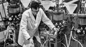 ![]() Eawag-Forscher Adriano Joss testet das Verhalten von Mikroschadstoffen mittels Kläranlagen im Labor-Massstab an der Eawag in Dübendorf. /