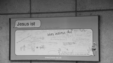 Inhaltlich wird die Jesus-ist-Kampagne kaum viel Neues hervorbringen, denn dafür eignet sich diese Form des «Dialogs» schlicht nicht. Vorwiegend zieren kurz nach dem Aufhängen Botschaften wie «mein Leben» oder «mein Erretter» die grossen, weissen Flächen der Plakate. Aussagen also, die am ehesten die Gedankenwelt evangelikal sozialisierter Personen widerspiegeln. Dies ist wohl kein Zufall, rufen doch die Kampagnenmacher auf Facebook ihr Umfeld dazu auf, die Plakate mit einem eigenen Statement zu versehen, und ein Foto davon als Hintergrundbild zu verwenden. Religiös Distanzierte dürften im Schnitt wohl weniger motiviert sein, ihre Gedanken auf den Plakaten festzuhalten.