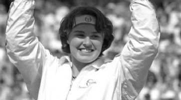 Nach ihrem fünften Turniersieg der Saison in Miami stand sie das erste Mal ganz oben im Ranking der WTA. Diese Position hielt sie danach für 80 Wochen am Stück inne. Es war die erfolgreichste Zeit in der Karriere Hingis'. Im selben Jahr gewann sie drei ihrer fünf Grand-Slam-Titel und triumphierte an weiteren neun Turniere auf der WTA-Tour. Historischer Wimbledonsieg Auf dem «heiligen Rasen» in Wimbledon sorgte sie am 5. Martina Hingis hatte 1997 mehrfach Grund zu jubeln. /