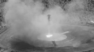 ![]() 6,5 km/h verlangsamt und so ganz weich auf der Erde landet. Laut dem Unternehmen erreichte die Rakete ca. 100'000 Meter an seinem höchsten Punkt. Dies ist die dritte derartige Testfahrt für diese Rakete, womit sich die Firma einen weiteren Schritt nähert, wiederverwendbare Raketen für die Raumfahrt zu liefern.