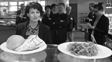 Risikofaktoren vorbeugen Darum wollen Bund und Kantone die Bevölkerung dabei unterstützen, einen gesunden Lebensstil zu pflegen und den Risikofaktoren vorzubeugen. Bundesrätin Leuthard bei einem Kantinenbesuch. (Symbolbild) /