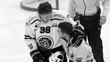 Luganos Damien Brunner wird verletzt vom Spielfeld geführt. /